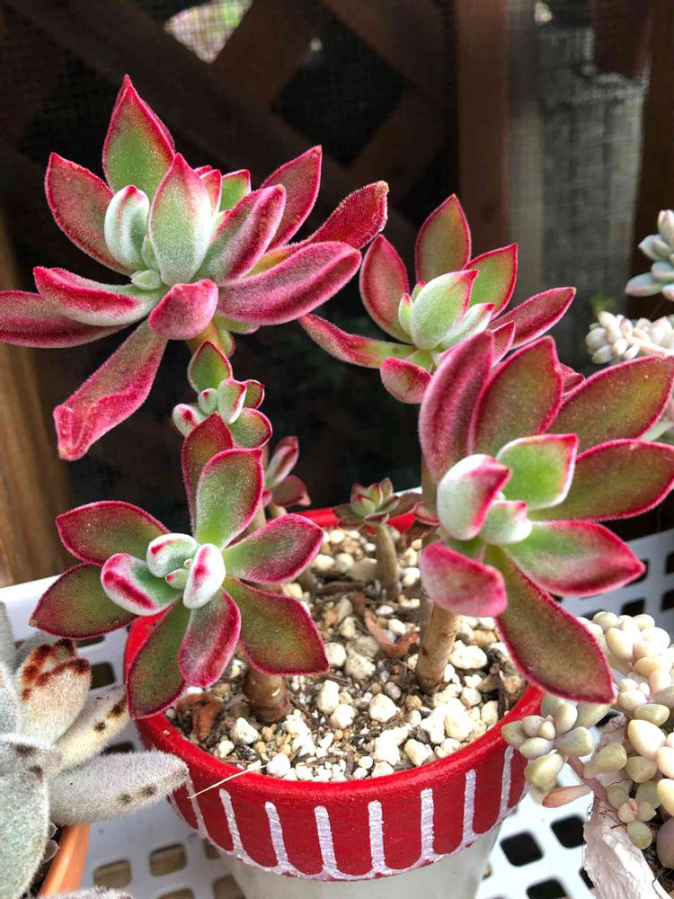 赤い鉢に赤いハムシーさんが映えて可愛いですね〜(*´`)♥💚