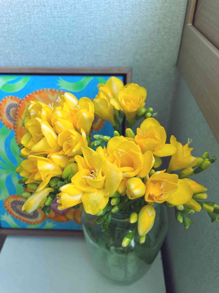 さん 寒いせいかフリージアちょっとお高めでした😅でも香りも良くて明るい色で元気出ましたよ〜☺️