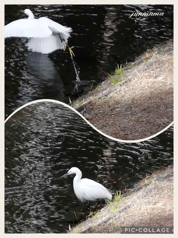 ここは、よく白鷺や青サギが餌を獲っています