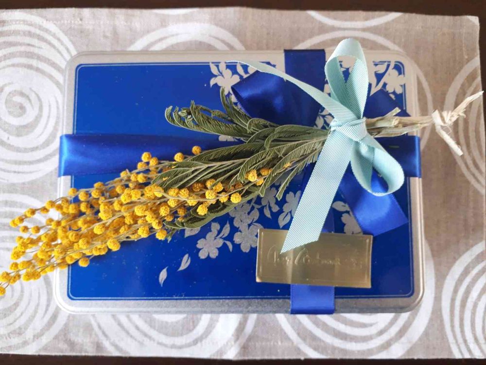 ミモザを買ったお店のすぐ近くのお菓子屋さんシェ・アオタニのクッキー缶