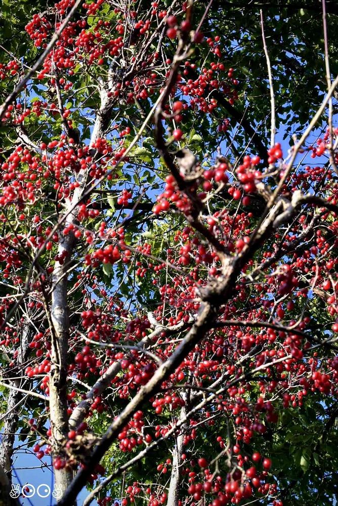サンシュユの実は、最初 渋みや酸味が強く、生食はできないとされてましたが、時間を於いて完熟すると甘酸っぱくなって生食できるようになるようです。🤤