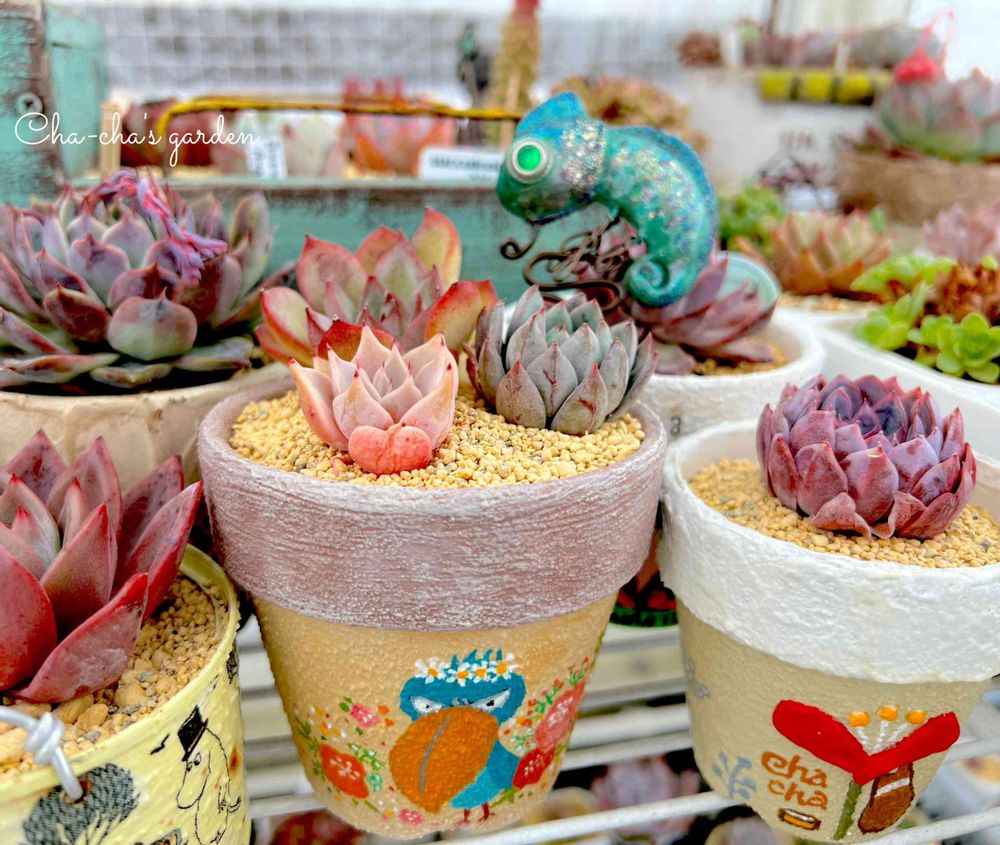 多肉ちゃんに鉢💕カメレオンピックも素敵です✨