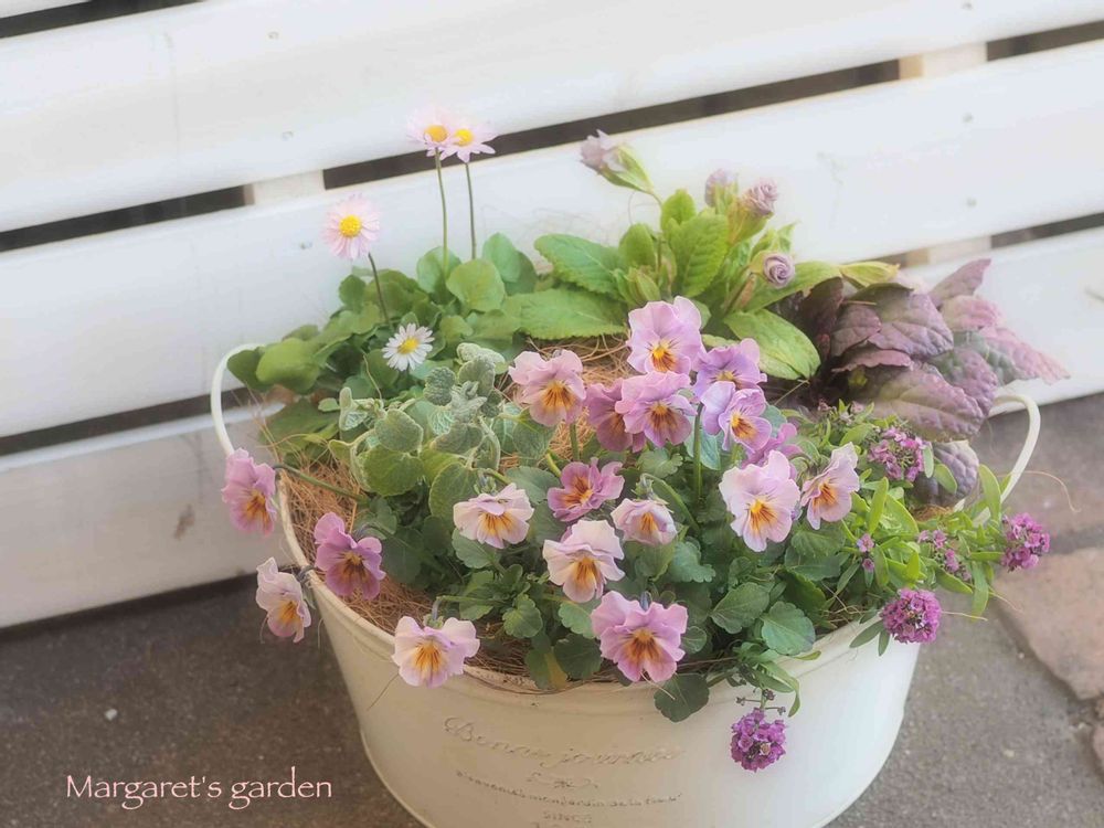 優しい春色の寄せ植え🌸とっても素敵ですね😍