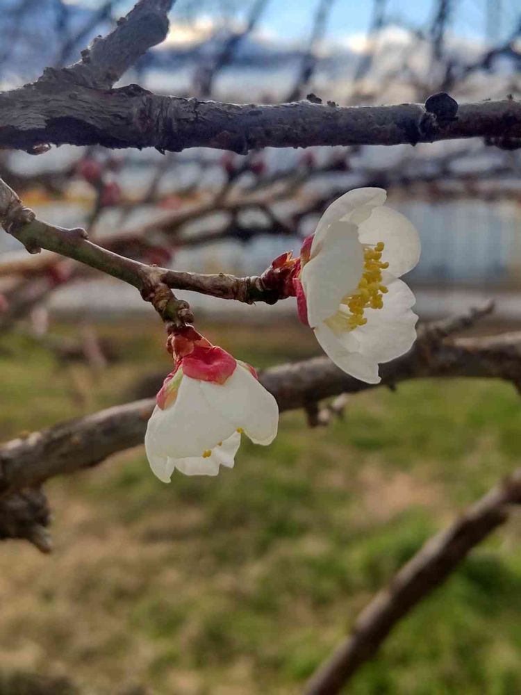 梅の剪定の枝を片付けていたら梅の花を見つけました‼️