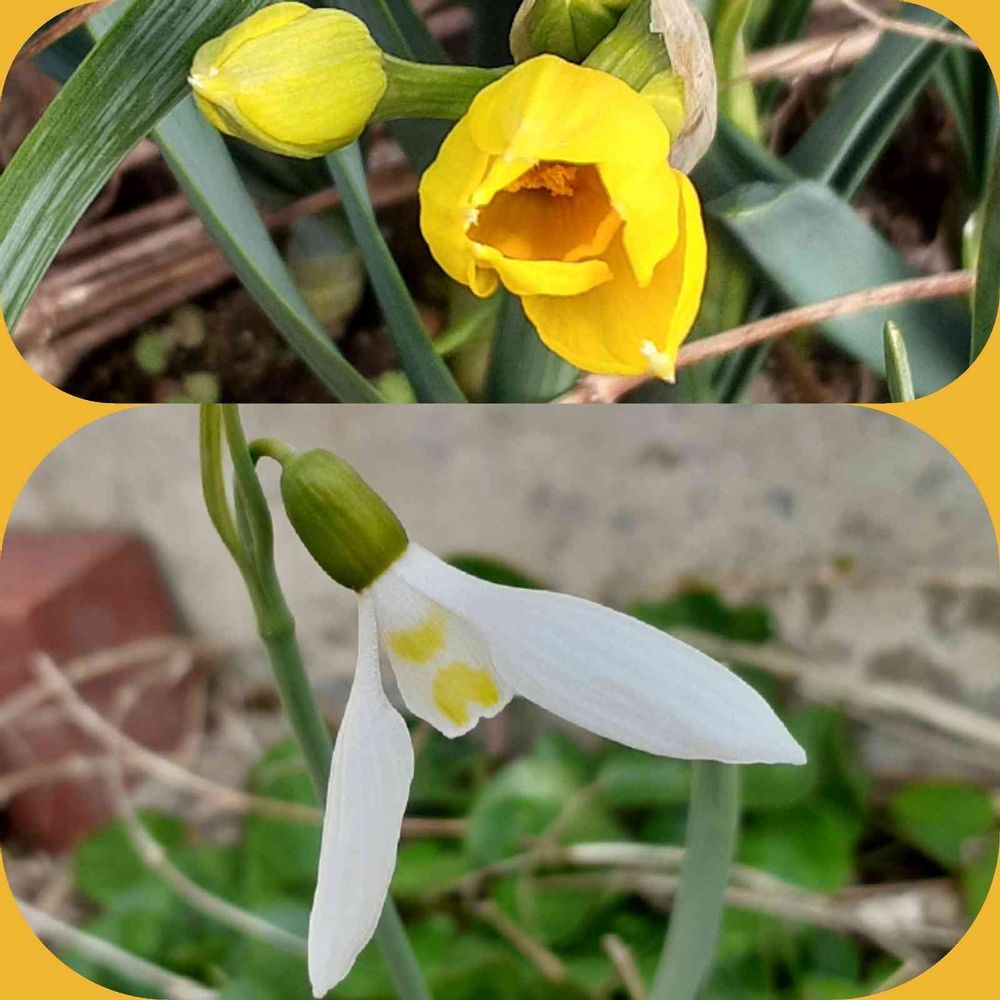 蕾だったスノードロップの花が開きました🤍開きかけの🟡水仙も顔を見せてくれました😃💕