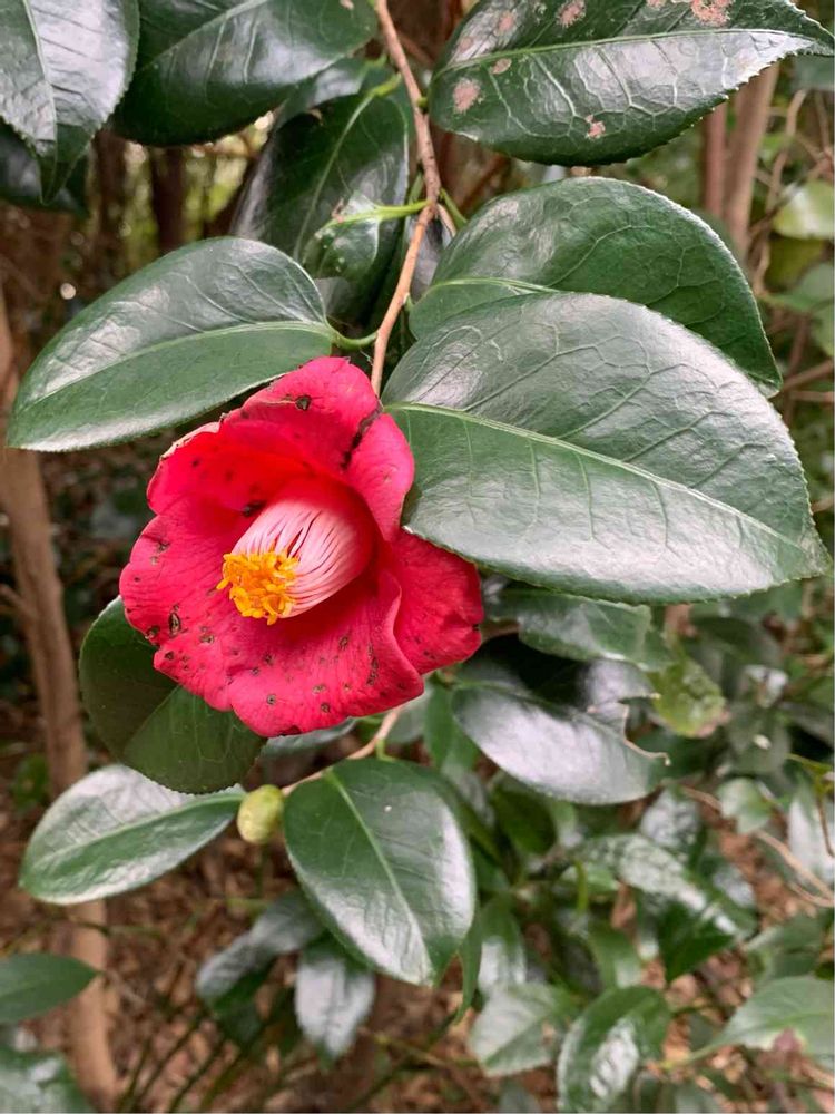 里山歩きをしていて見つけた樹間に咲く藪椿🌺は風情がありますね〜❣️。 大好きな花の一つです。