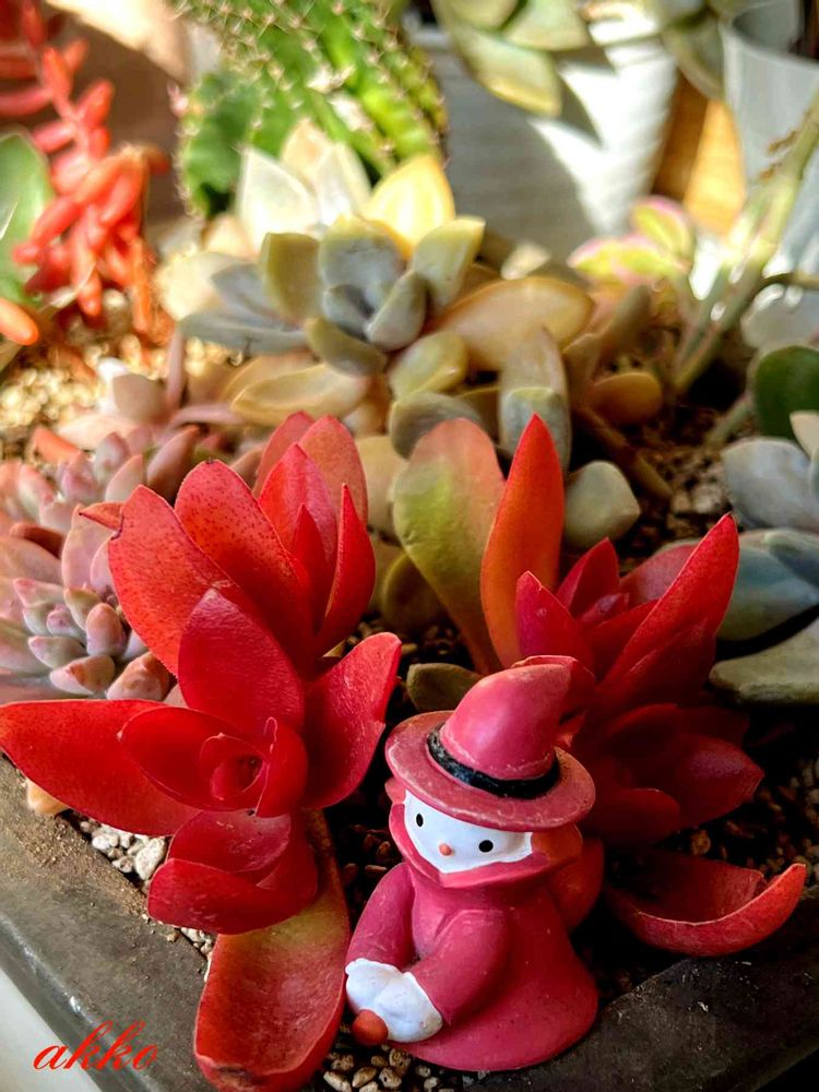 2年前の多肉講座の時に,講師の先生が持ってきてくれた魔女さん,一緒に置きました‼️