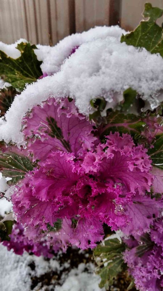 雪をまとう ピンクの葉ぼたん