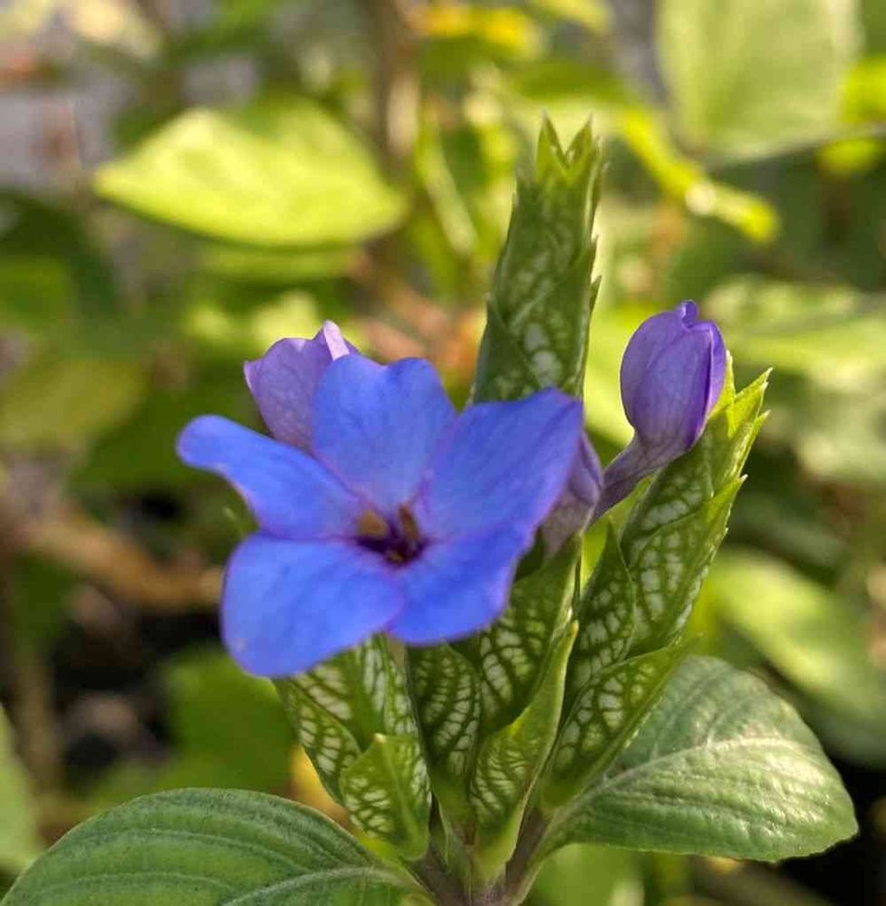 瑠璃色の花を冬に咲かせる 瑠璃花笠。