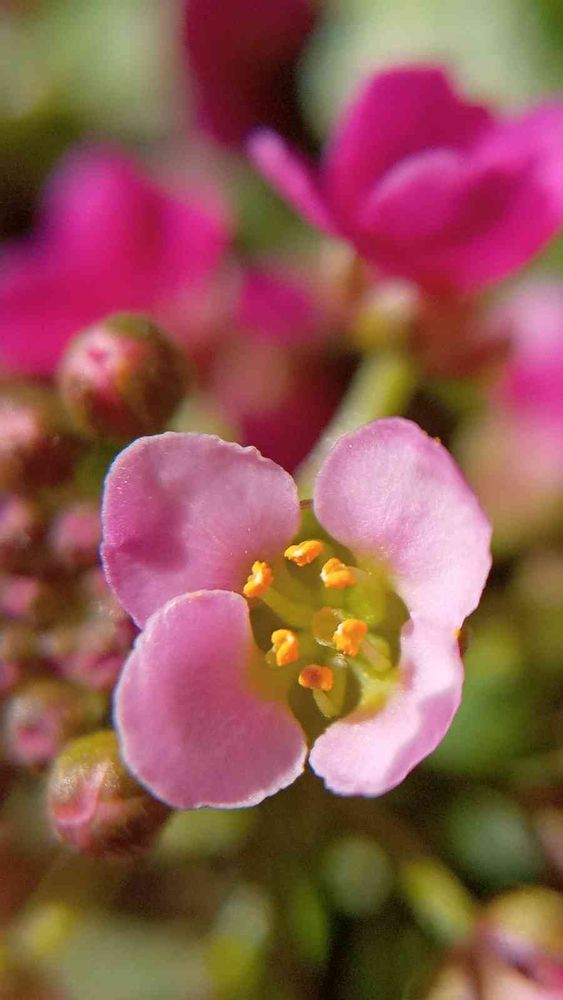 アリッサム開きかけは赤紫 開ききるとピンク小さくてもかわいい 形が端正でなくても愛らしい花です。💕🎶💕🤗