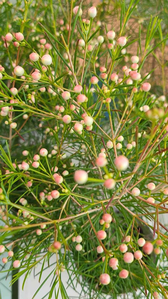 ワックスフラワーさん、可愛いいお花が咲きますが、私は、飴玉の様な蕾が、好きで〜す。😊