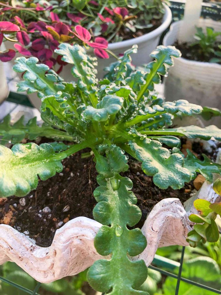貝殻の鉢はちょっと狭いかもなーと思いますが、割と元気に育って葉を茂らせています☺️