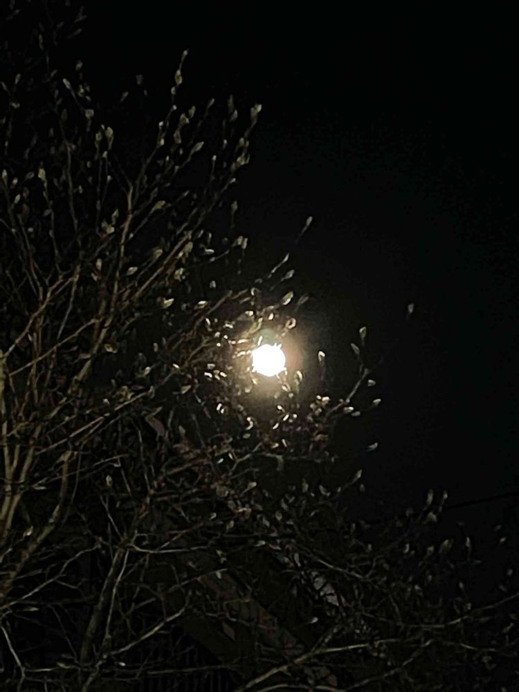 お向かいの空き家のヒメコブシ越しに十六夜の月🌕💕😆❣️