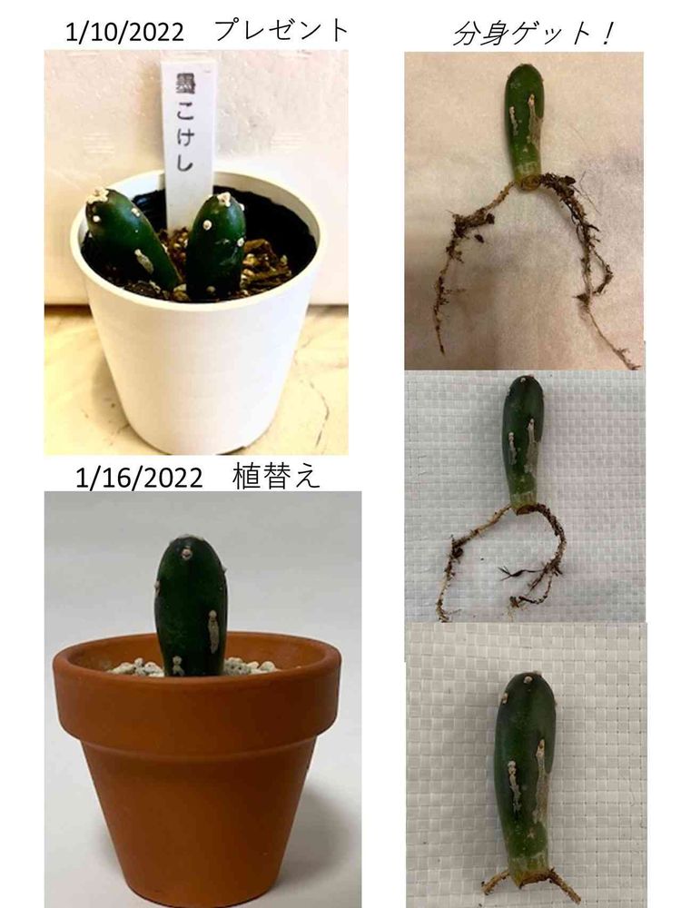 初詣の帰りに上野松坂屋隣の3Coinsに立ち寄り友人に買ってもらったお初の墨こけし😃 本体は友人宅において分身を連れて帰ってきた😆 冬場なので植替えはいかがなものかと思ったが、後には引けない🥺 乾燥後、根を処理して植替え完了😤 さあ、寒いけど頑張って冬を越して春までに、しっかりと根を張ってくれますようにと励ました次第😄