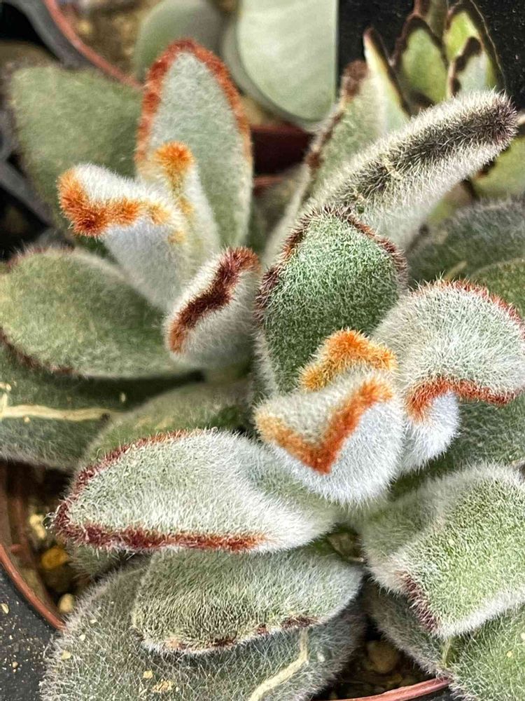 ふっくらとした丸みのある葉っぱにうぶ毛が生えていて、見た目からふわふわしているうさぎの耳にも似た葉っぱが特徴的な多肉植物です。