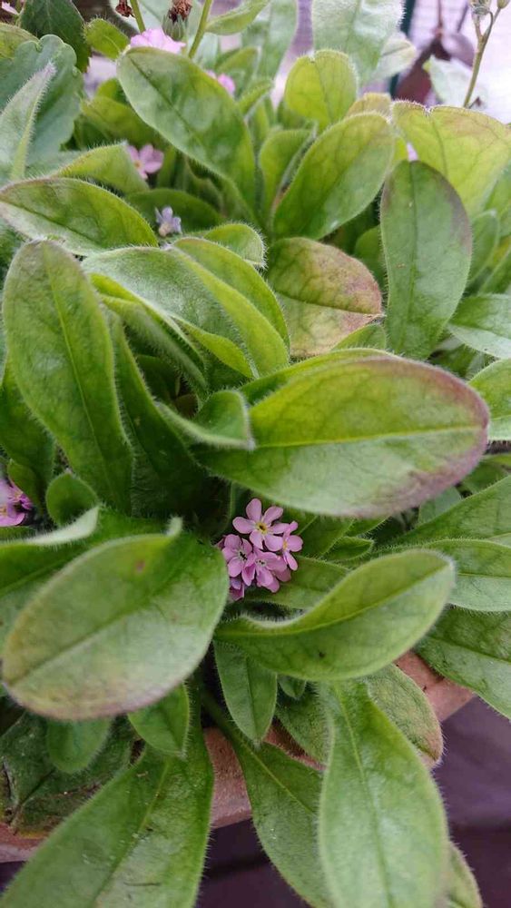 昨年末、こぼれ種で生えていた忘れな草を思わず庭からビニールハウスに避難😂