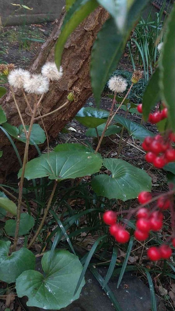 小さな庭,ツワブキの綿毛,万両(赤)の投稿画像