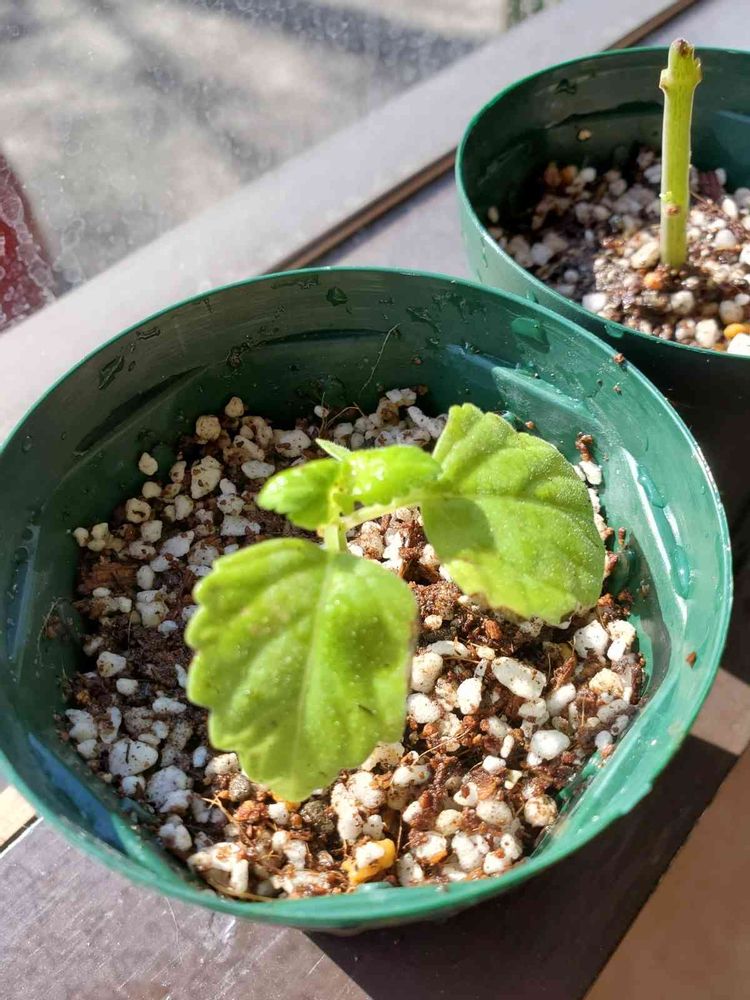 奥はオマケの同種。届いた時は全ての葉が落ちて、こんな状態でした。