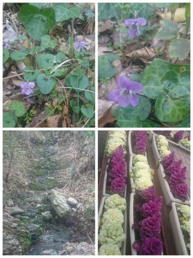 日曜の公園に咲いていたスミレ?と風景と植えてあった葉牡丹たちꕤ