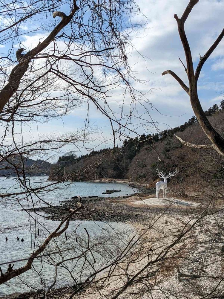 石巻市の白い鹿のオブジェです。でっかくて素敵でした