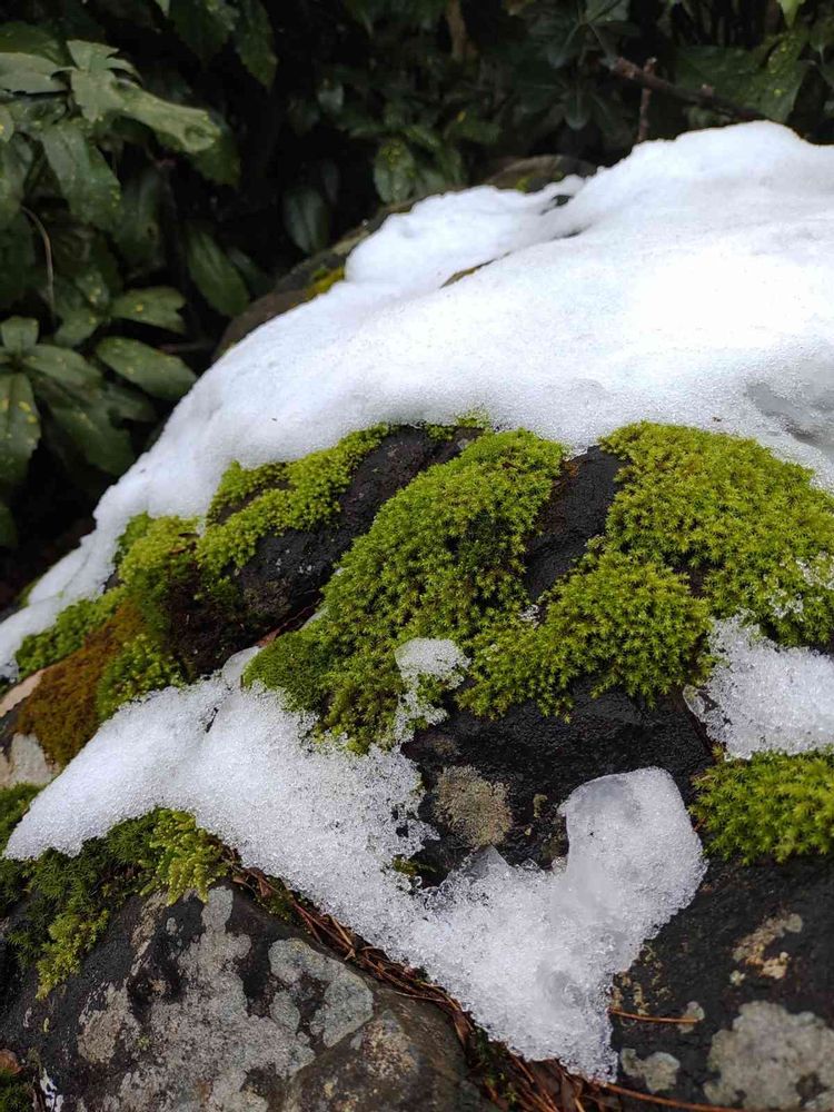 はじめまして😊苔の緑と雪の白が素敵な対比でした♡💚