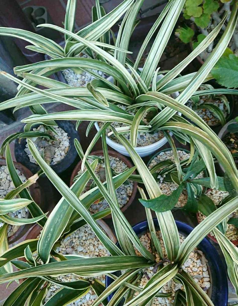 玄関先に並べてる万年青。