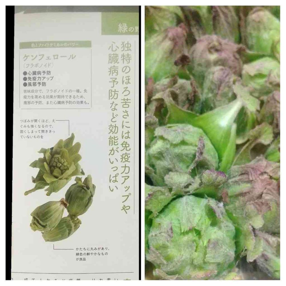 大寒の寒さで、葉の先端がやられてしまいました。独特の苦味を抑え栄養素を効率良く吸収するため、油を使った料理法がおすすめ。次第に蕾が開いて苦味が和らぐ天ぷらは最高ですね!
