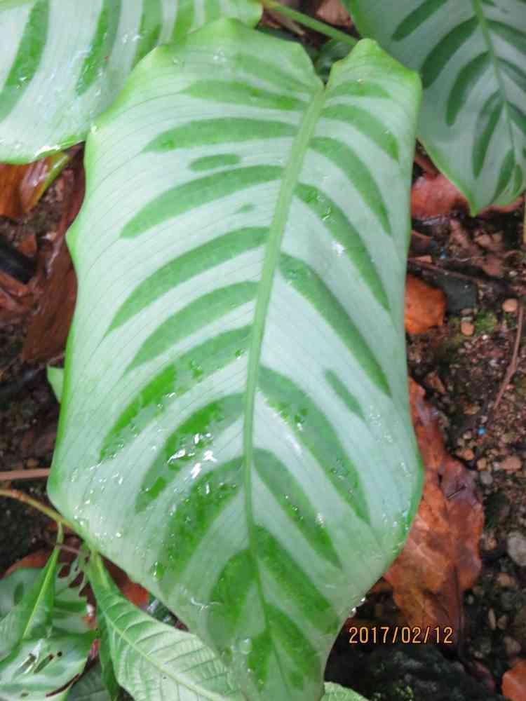 温室で見かけた、カラテアベラ。葉の中に葉が描かれているように見えるところが面白い。カラテア属の植物はこのような模様が多い。