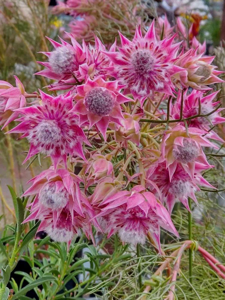ヤマモガシ科プロテア属の半耐寒性常緑低木。