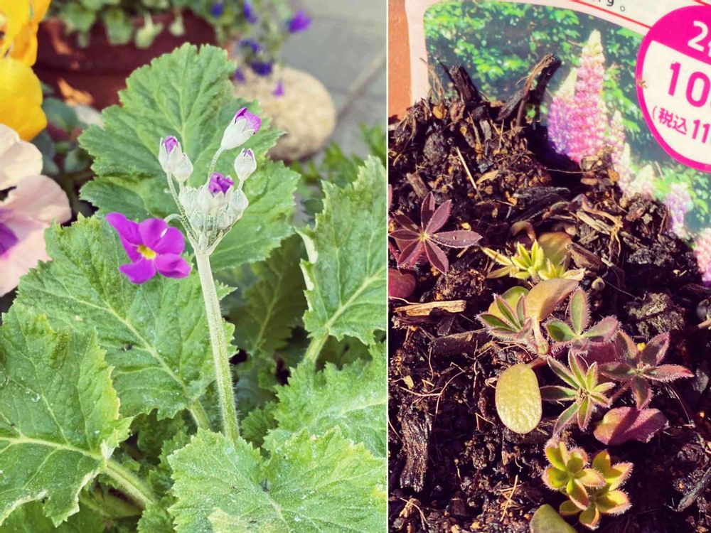 ⬅️左は プリムラマラコイデス🌸がやっと一つ咲きました❣️こぼれ種から育っています✨