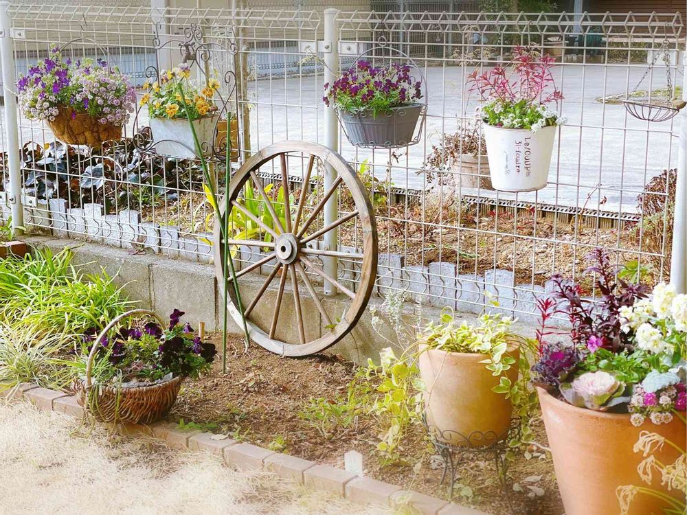 ガーデニング雑貨では、車輪とハシゴって定番じゃないですか。最近、雑貨で雰囲気変えています。