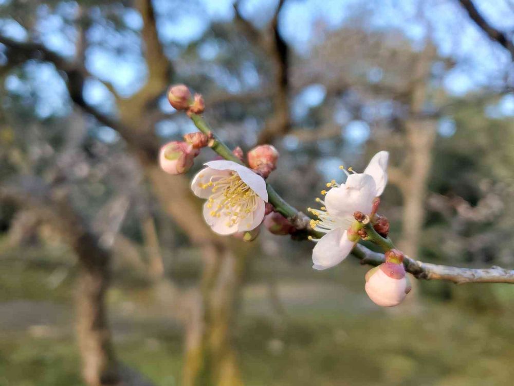 今日 散歩道で 少しだけ咲き始めた 梅の花を見ました✨