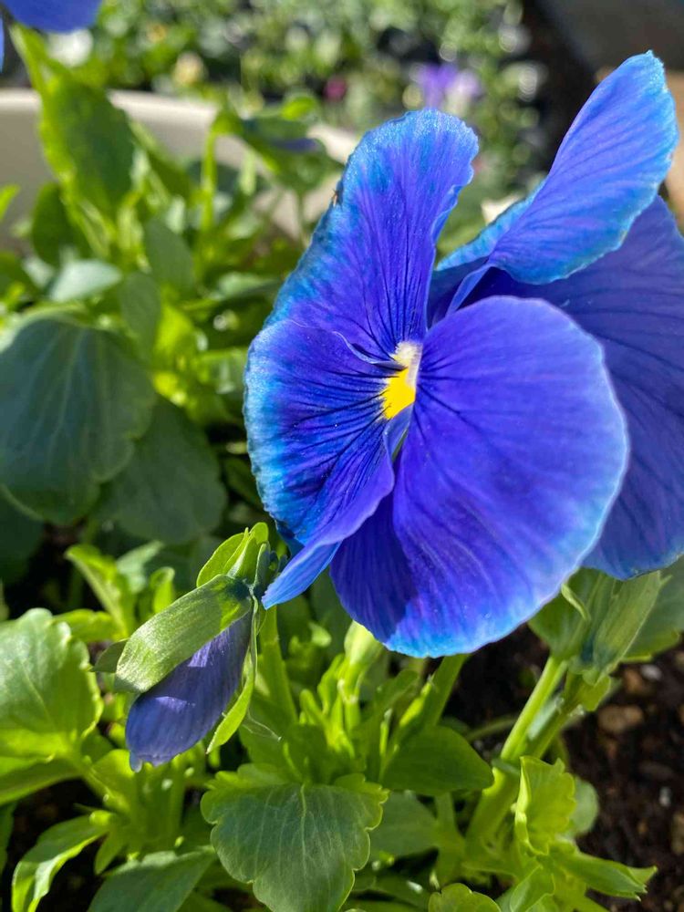 八百屋さんの店先にとても綺麗な青いパンジーが並んでました
