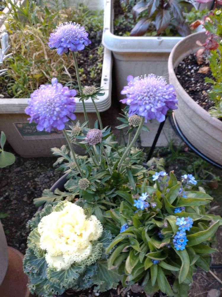 寒い中、綺麗に咲いています。私が夏に育てたスカビオサは、草丈1mぐらいありました。