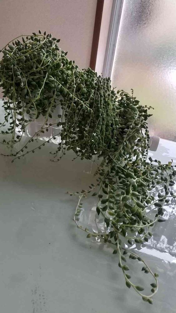 今シーズンは冷え込みが厳しくて暖房オートにし猫🐱の風邪対策と思いきや、さすがの🌱グリーンネックレス🌱窓越しの朝晩❄氷点下❄でも日中はガンガン日光浴🌞で鉢の中カラカラ🌱シワシワ🤣3週間振りの恵の水をたっぷりどうぞ🚿🌱🚿