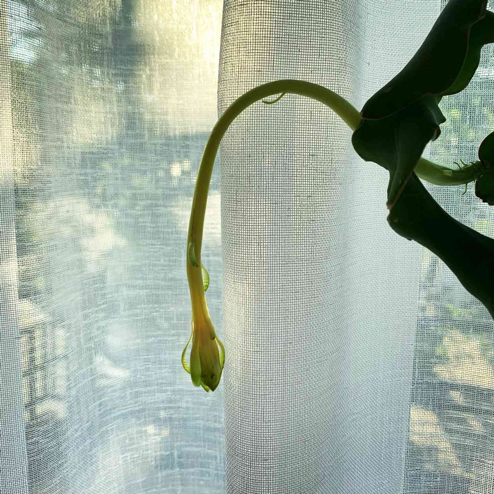 うなだれたミニドラゴンフルーツの蕾をみて知らないうちに咲かれてしまったことをしり、私もうなだれる😭