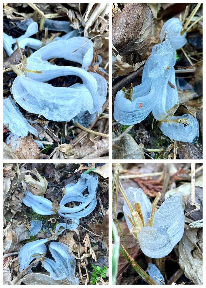 シモバシラ、白のイメージだったのですが、こんなに綺麗な水色なんですね。💙