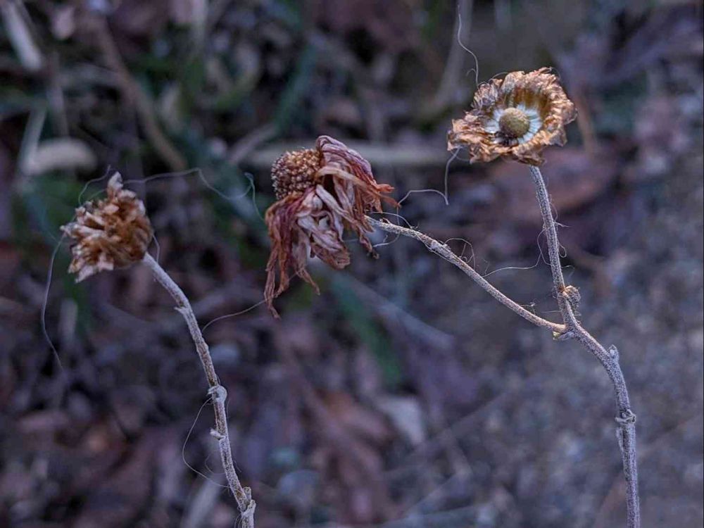 「私達去年よく頑張ったわね〜。今年もあったかくなったら又頑張りましょうね。…でもそろそろ子供達に任せた方がいいかしら?」…何だかいたわり合っているように見えた薄ピンクの小菊お婆さん達です。