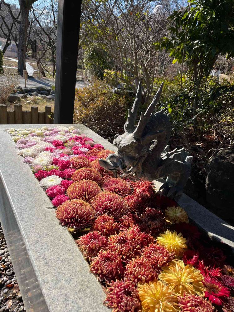 クロマロさんのお出かけ先,花手水(はなちょうず),冬の花の投稿画像