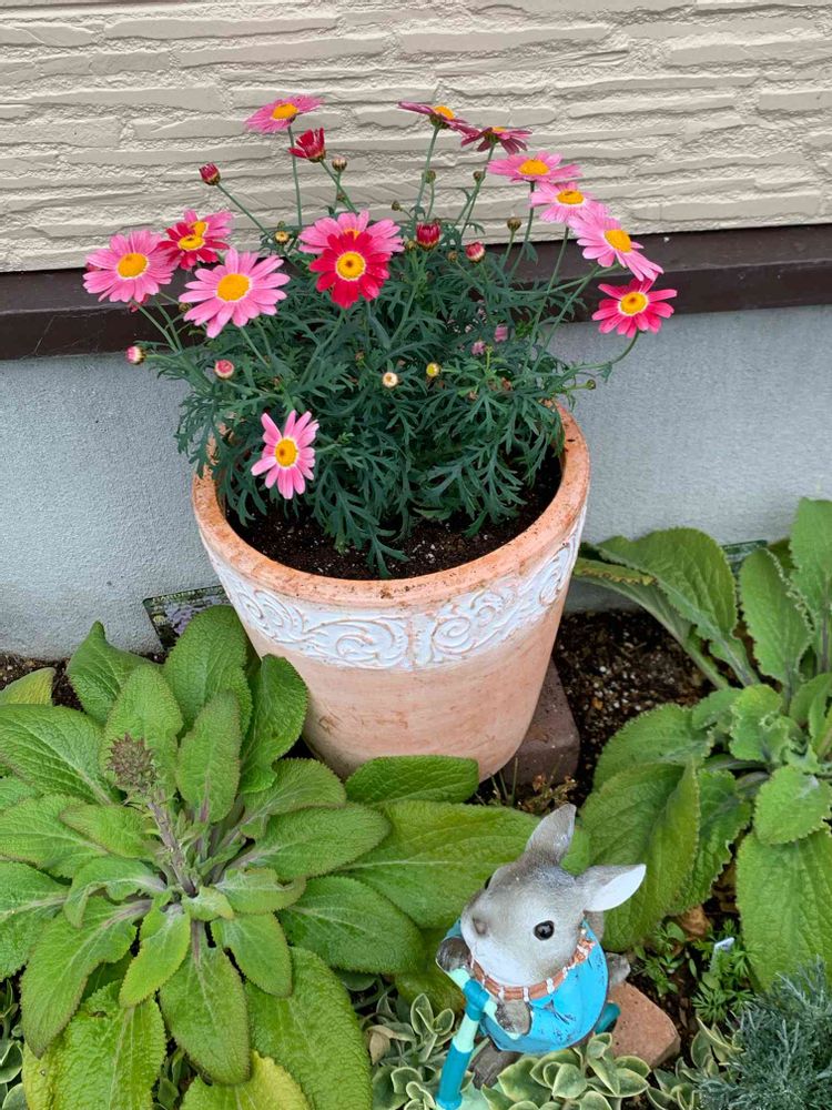 寂しい花壇に 明るい色の花を置いてみました!可愛いなぁ💕