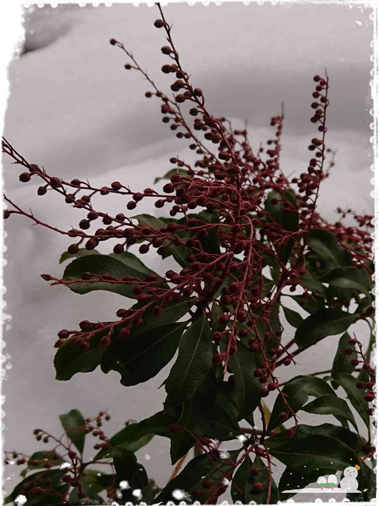 picは根雪化した雪の下から やっと顔を覗かせたアセビ✨