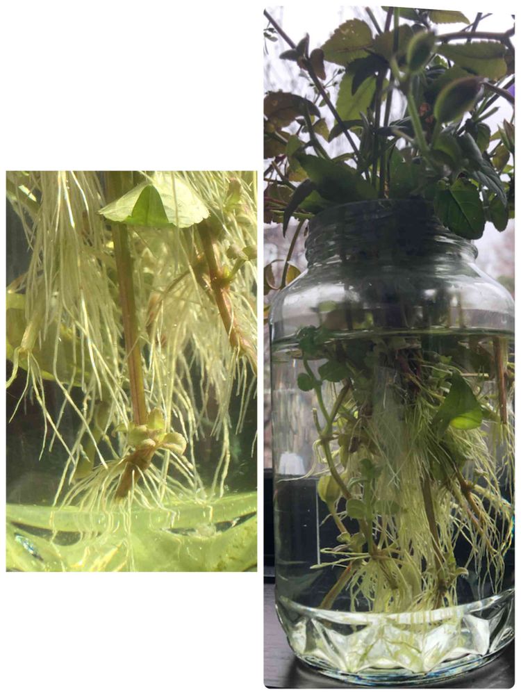 水耕栽培用には寒くなる前に元気な茎を5本ぐらい切ってメネデ-ル水溶液に浸けました。根っこの成長を見るのも中々楽しいです。