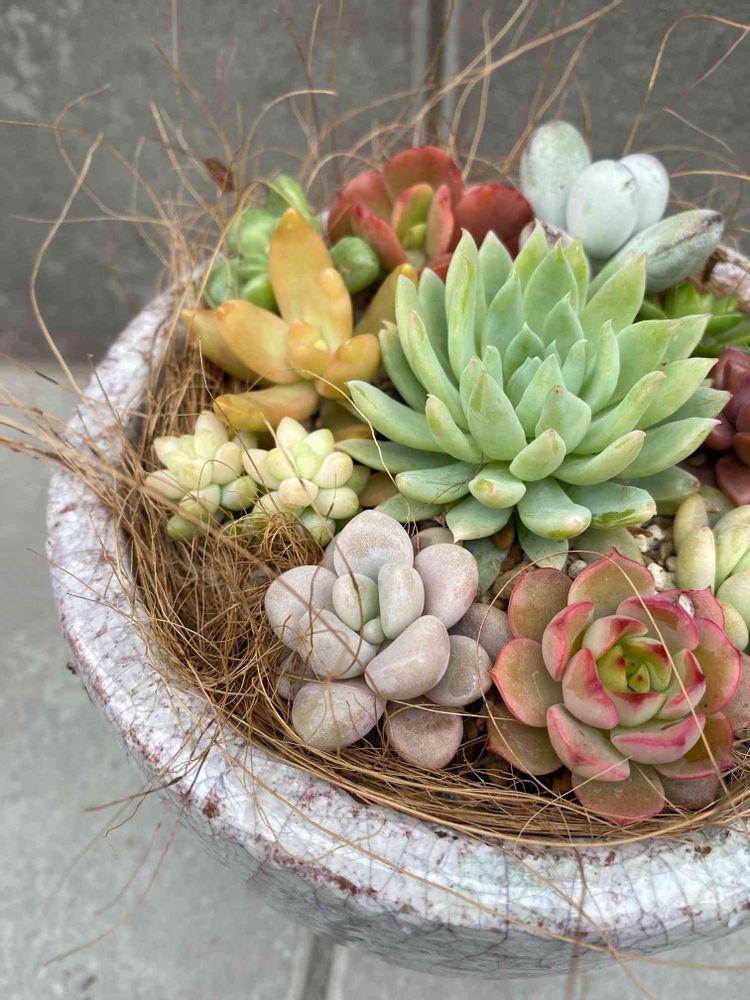 旦那さんの職場に趣味スペースを広げ始めた私ですが、旦那さんが多肉の寄せ植えになかなかの好感度を示しましてもう一個欲しいと言い出しました。