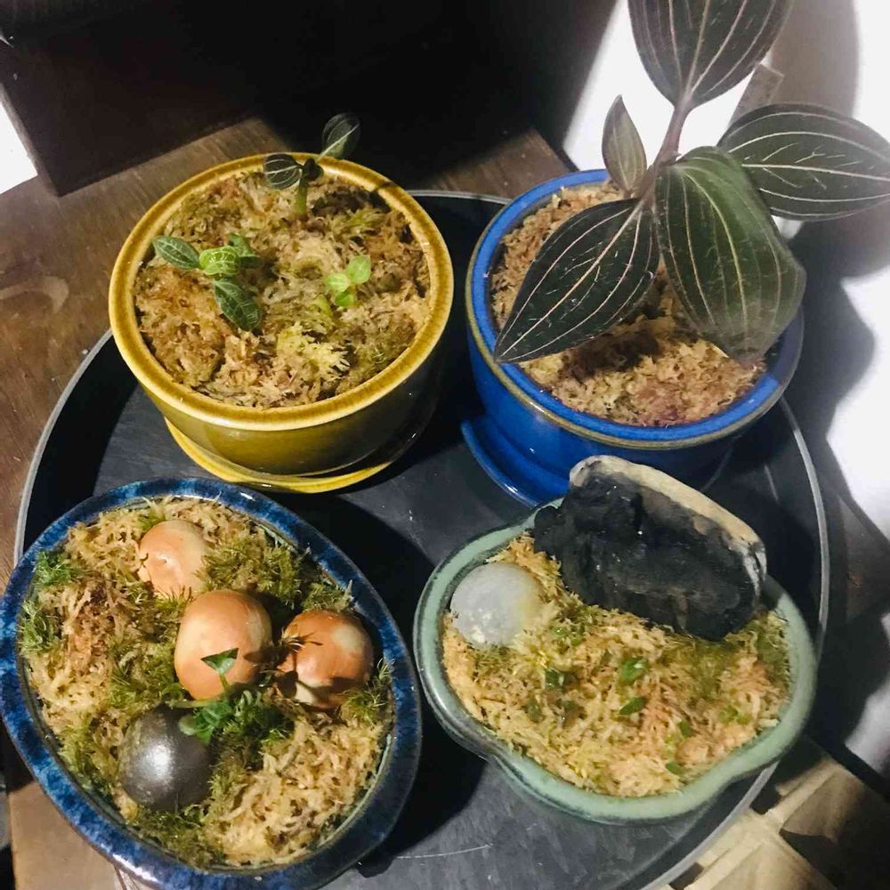 小判鉢のベニシュスランが殺風景なので苔を添えた