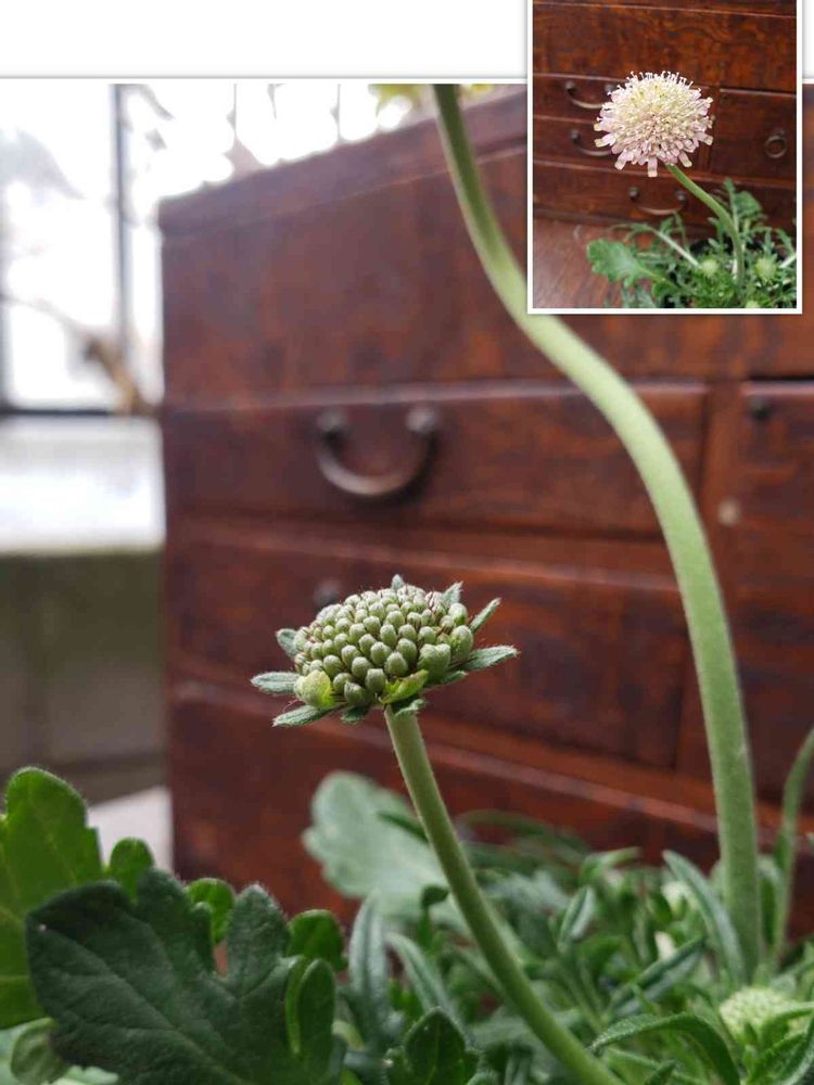 スカビオサ、ピンクッションっていう品種ありますよね☺️裁縫箱とピッタリなコラボ🎶