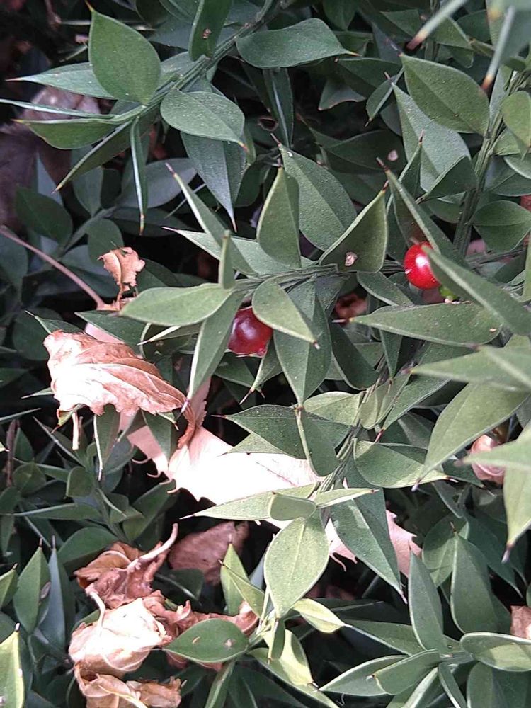公園の花壇のナギイカダの実も赤黒くなってます。