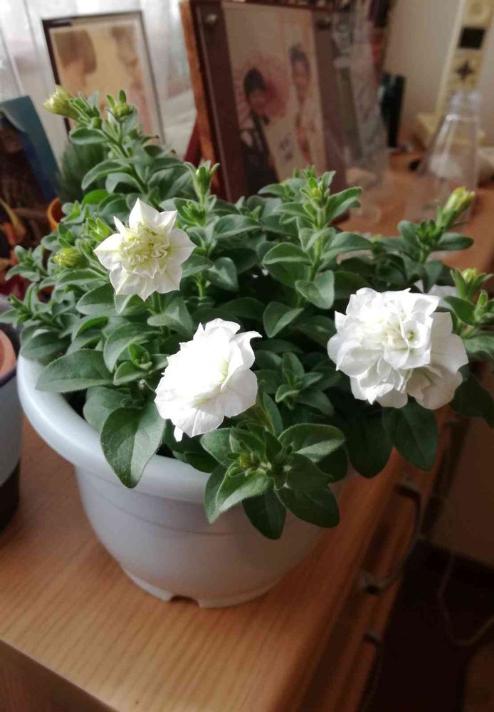 冬越し中、日当たりの良い窓辺で管理中のサフィニアフリルです✨冬越し中に咲かせていいのかわからないのですが💦やっぱり見たくて😅このまま元気に冬を越してほしいな✨