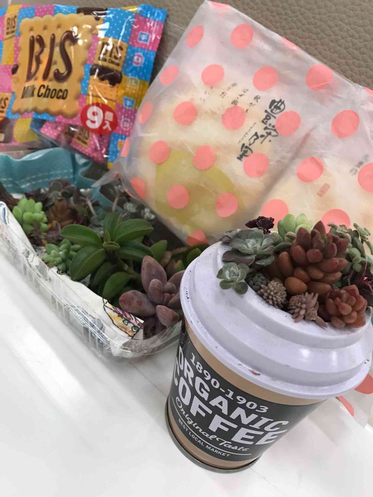 早ーい😂⤴⤴ まだマクドナルド食べてるよー🙆❗ オモチャはドラえもん✨ セダムモリモリなりますよーに😁⤴⤴