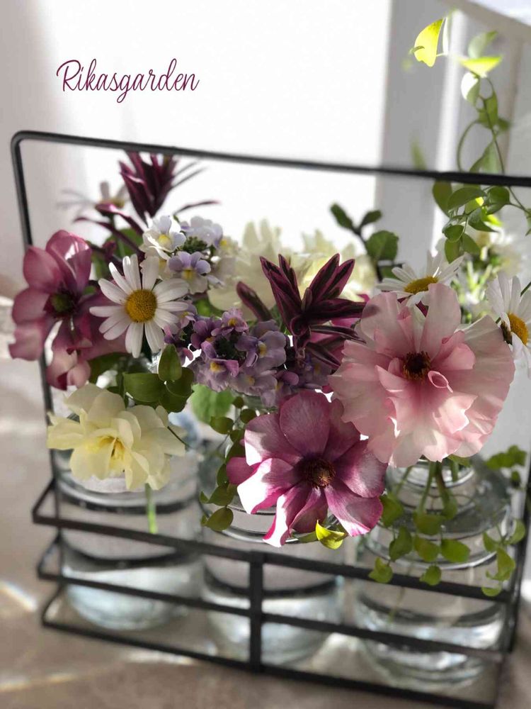 ガーデニング大好き💕 庭の花🌼をミニアレンジして部屋に飾るのが楽しみです。