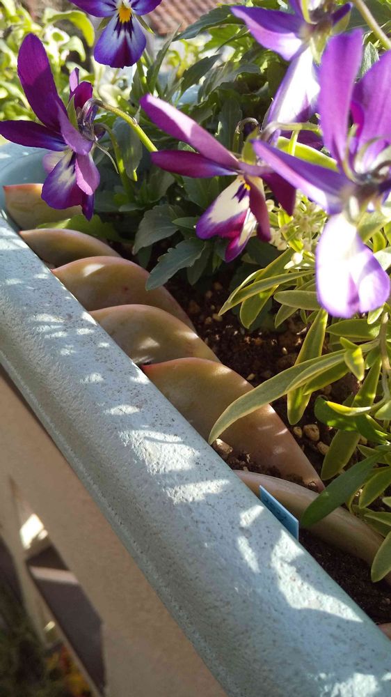 取れた葉っぱの置場所としてビオラプランターの端に並べました。